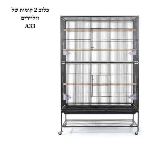 כלוב 2 קומות לתוכים דגם A33 – וולייר כפול ומרווח